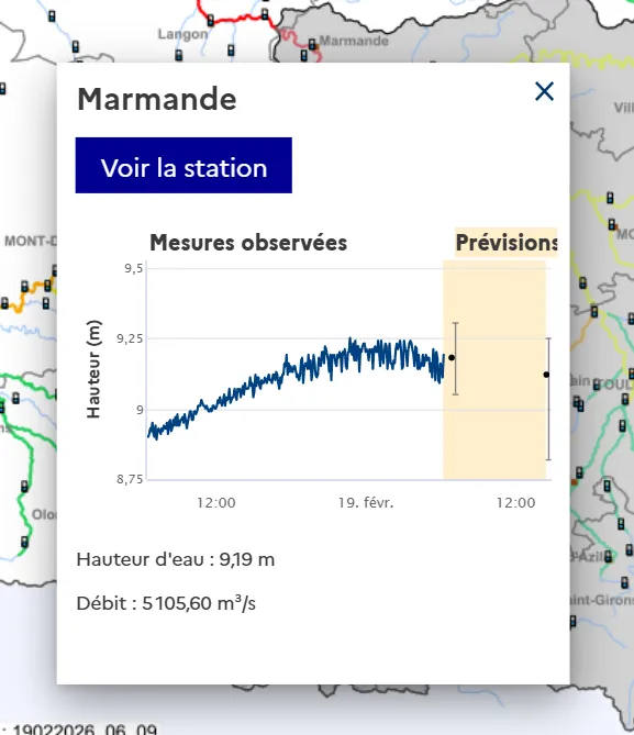 7h27 : A Marmande, attention, le niveau de Garonne est en baisse mais il remontera pour atteindre à 14h30 9m12 selon les dernières prévisions de Vigicrues.