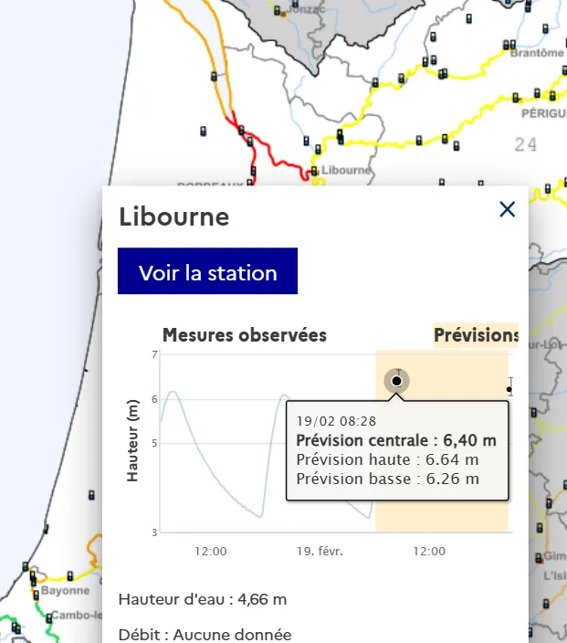 7h33 : Comme Bordeaux et plusieurs autres communes, la Ville de Libourne a déclenché son plan de sauvegarde. Un numéro d'urgence a été mis en place pour les habitants : c'est le 05 55 57 33 33. Le pic est attendu à 8h28 à 6m40.