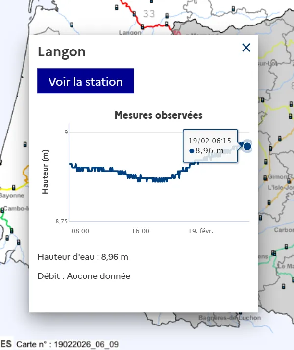 6h40 : Les niveaux Vigicrues ce matin pour la Garonne Marmandaise :