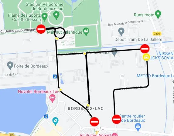 En conséquence, la Préfecture décide de rendre inaccessible à la circulation des véhicules à moteur à partir de 16h aujourd'hui sur un périmètre défini (carte ci-dessous) et dès 17h demain. Malgré la grève annoncée chez TBM, une priorité sera donnée aux transports en commun (pas impactés par le mouvement de grève) et à l’utilisation du vélo. Il est recommandé aux spectateurs d’anticiper leur arrivée au stade.