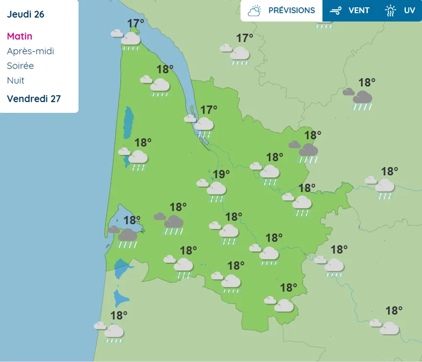 Il va beaucoup pleuvoir toute la journée en Gironde.