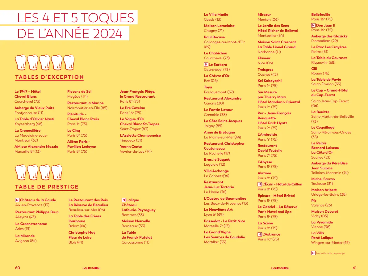 Le guide gastronomique vient de dévoiler son célèbre podium. 5 Toques, 4 Toques. Le verdict vient de tomber. Il a révélé le nom de celles et ceux "qui feront le bon et le beau pour l’année à venir".