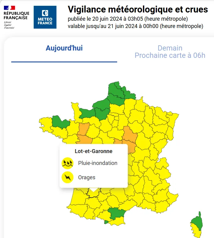 Le Lot-et-Garonne est aussi en vigilance jaune aux orages ce jeudi avec, en prime, une alerte au risque de "pluie-inondation".