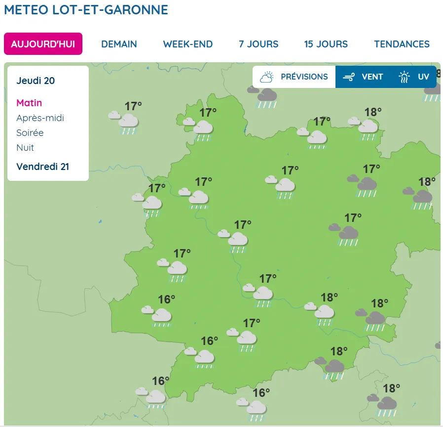 D'intenses averses orageuses sont notamment prévues dans le Grand Villeneuvois, comme en atteste la carte de Météo France ci-dessous.