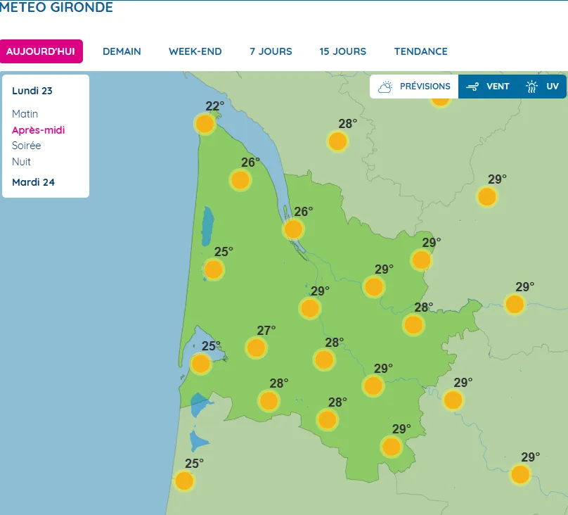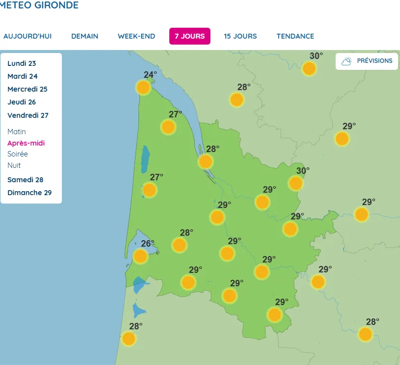 La semaine restera chaude mais elle commence avec des températures flirtant ce lundi avec les 30 degrés, en Gironde comme en Lot-et-Garonne, selon les prévisions de Météo France.