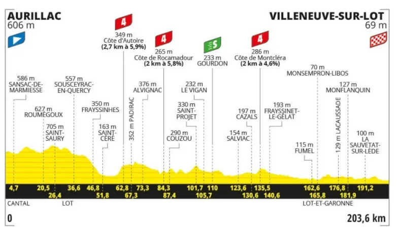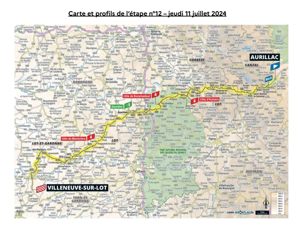 - Étape n°12 reliant Aurillac (15) à Villeneuve-sur-Lot (47) le 11 juillet,